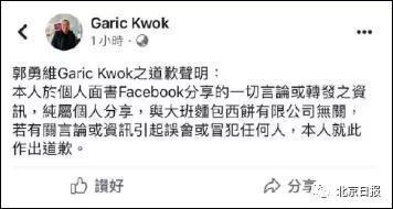 隨后,郭勇維刪文道歉,稱自己發(fā)表的相關(guān)言論僅是個(gè)人分享,與公司無關(guān)。